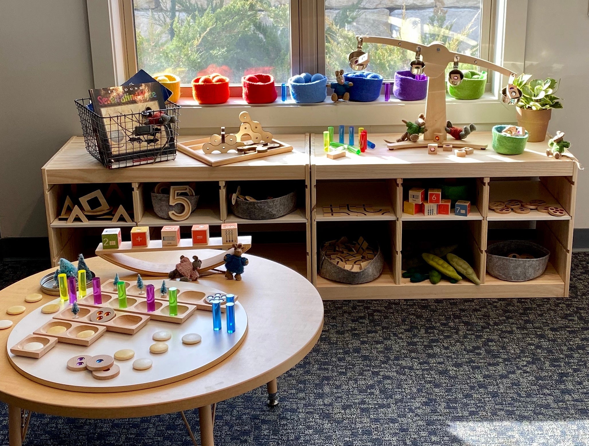 Math is so much more than counting! This area was intentionally designed to prompt children to group, pattern, order, sort, weigh, balance, compare, count, and more. Spaces full of mathematics materials promote reasoning, vocabulary development, and self-efficacy skills.