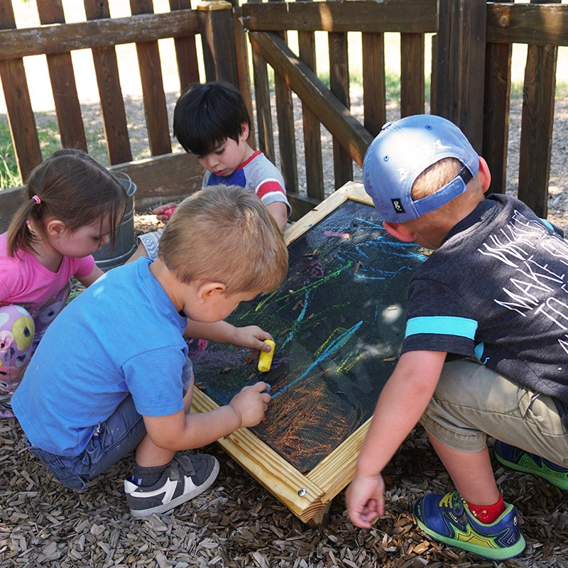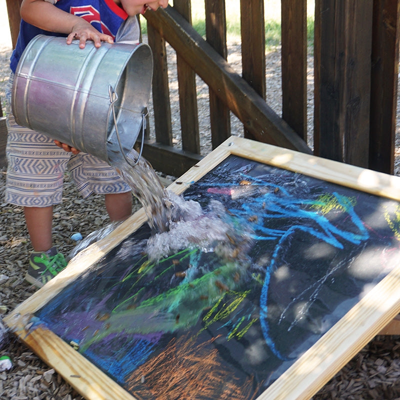 For use with chalk, water, or both. The Slate Tablet is intended to become a beautiful fixture in your outdoor environment. Whether the Slate Tablet is placed in your art area or nestled beneath a shady tree, children will find solitude in creating art for art's sake, which will be washed away in the rain or dried by the sun.