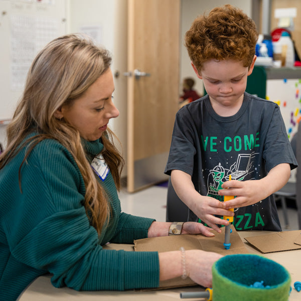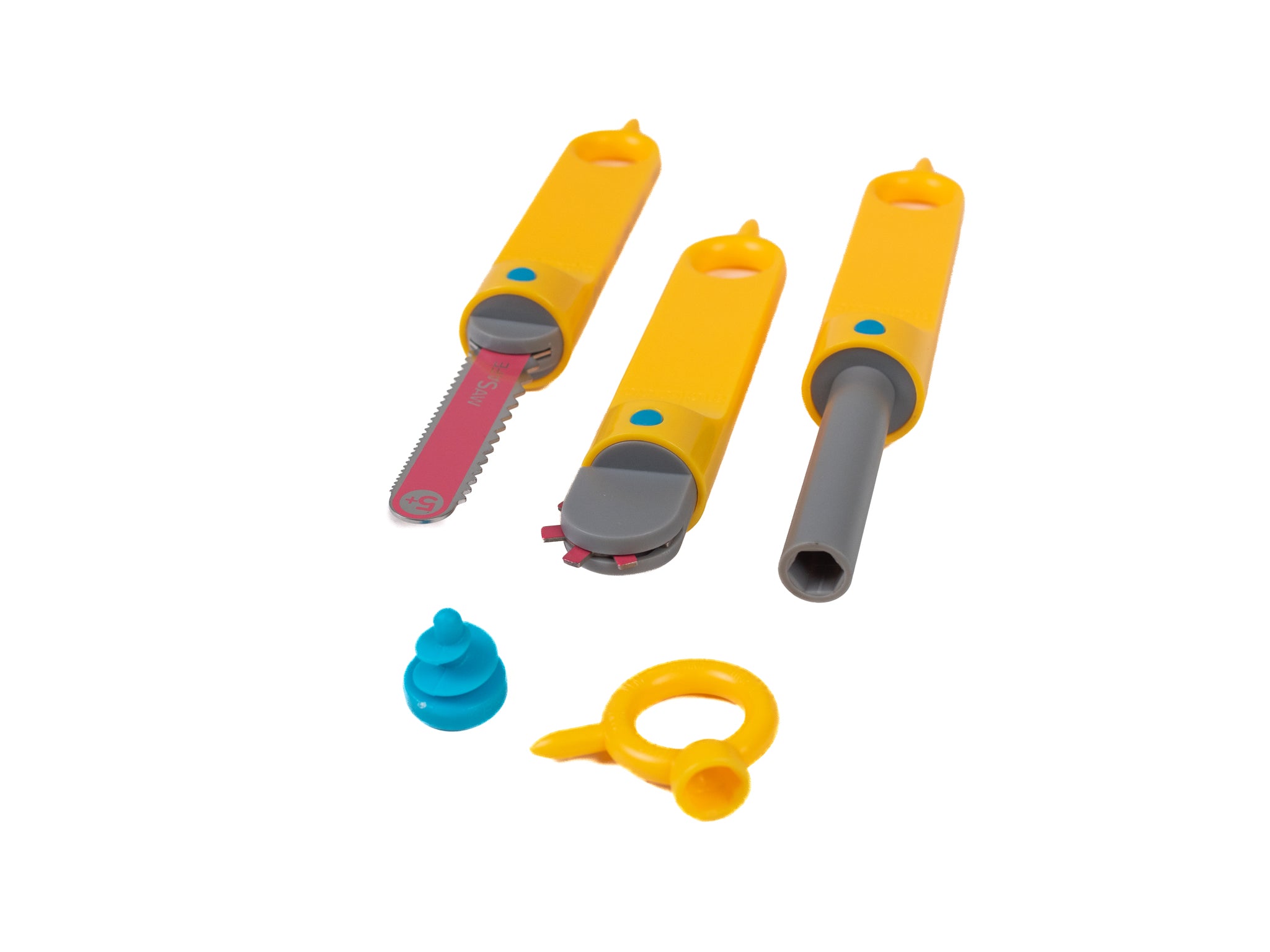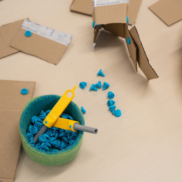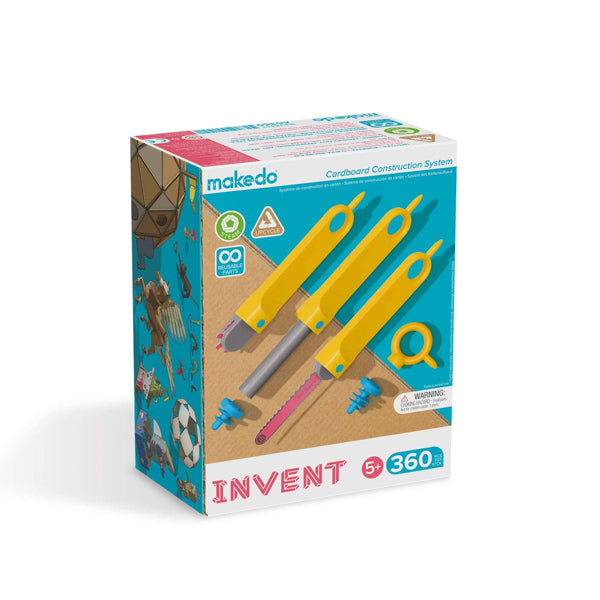 Makedo is an open-ended construction system with which children learn by doing, creating, experimenting, failing, and finding success as they endeavor. The reusable tools work with cardboard, a universally available, recyclable, and affordable material. This set includes 360 reusable tools to accommodate a classroom, library, workshop, makerspace or party.